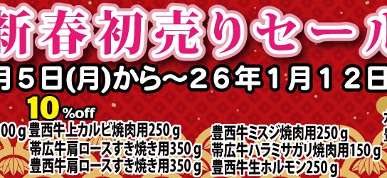 トヨニシファームからのお知らせ 2026年1月5日 1月5日(月)から1月12日(月)まで「新春初売りセール」実施致します。 トヨニシファームです。 明けましておめでとうございます。本年も、より一層のご支援 続きを読む