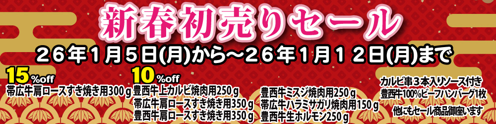 1月5日(月)から1月12日(月)まで「新春初売りセール」実施致します。