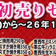 帯広牛・豊西牛ローストビーフ、帯広牛すき焼き用、豊西牛上カルビ焼肉用・ミスジ焼肉用、帯広牛ハラミサガリ焼肉用などセール中!